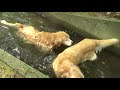 癒し動画 うさぎ Golden retriever swims in a pool (waterway) in the back of the forest | |